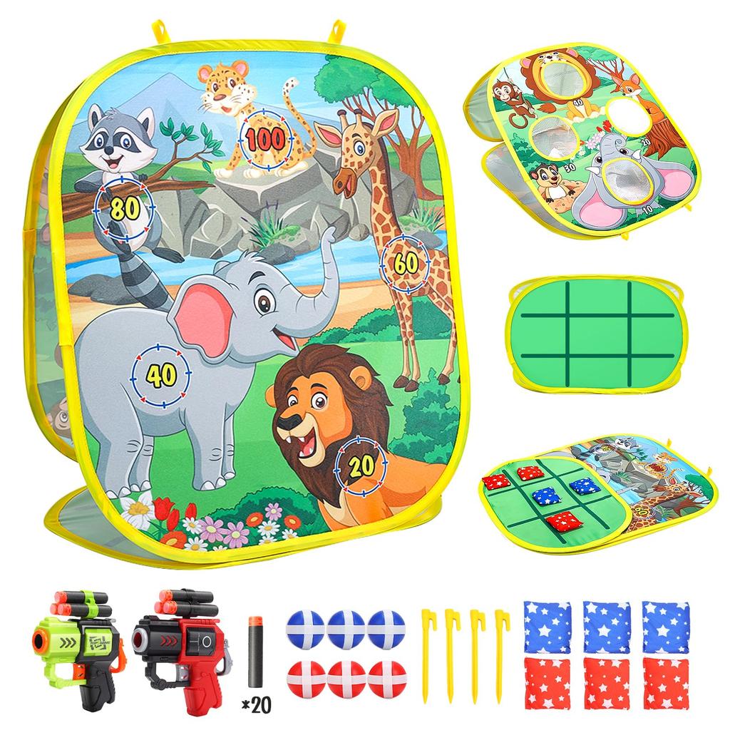 Dart Board Game Skirfy Toy 4in1 How to Play Dart Set Pistol 2 Pieces Sticky Ball Game Bean Throwing Bag Well Play Magic Tape Educational Toy Toy