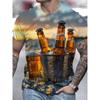 Elegantes Herren-T-Shirt mit 3D-Allover-Print-Bier-Design Grafische Herren-Bier-T-Shirts mit Rundhalsausschnitt und kurzen Ärmeln
