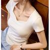 Taoxin Square Neck Short-sleeved T-shirt for Women's Summer New Pleated Slim Shoulder Top Base Shirt