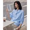 Summer Simple Loose Slim Half High Neck Three-quarter Sleeve Solid Color Pullover Chiffon Shirt Shirt Top for Women