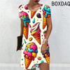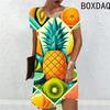 Elegantes und süßes Damenkleid mit Fruchtdruck, neues Sommerkleid, locker, lässig, kurzärmelig, Rundhalsausschnitt, Damenkleid mit 3D-Druck