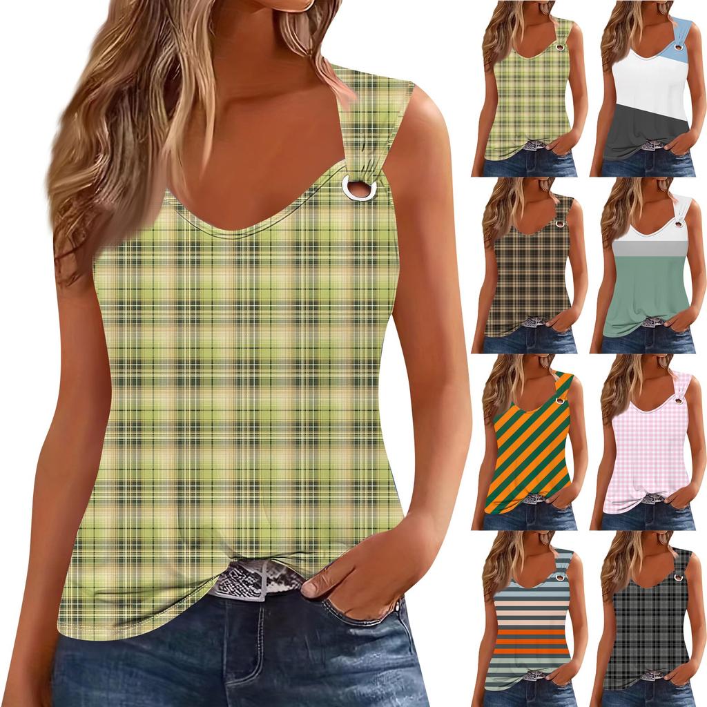 Damen Tank Top mit V-Ausschnitt, Basic, bedruckt, lässig, fließend, ärmellos, tiefer Seitenausschnitt, Tops für Damen