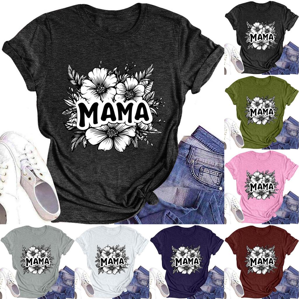 Damenmode Rundhals Kurzarm T-Shirt Muttertag Bedruckt Lässiges Oberteil