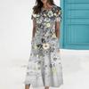 Merkmale:Damenkleid mit V-Ausschnitt und kurzen Ärmeln.
