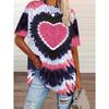 Übergröße Batik-T-Shirt mit Herz-Print Lässiges Kurzarm-Stricktop Rundhals, Frühjahrs- und Sommerkollektion Großes Größen-Shirt