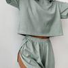 Damen Sommer Mode Gestrickt Gestreift Locker Kurzarm Shorts Pyjama Tragen Ein Hausanzug