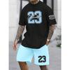 2025 Neuer Herren Kurzarm Shorts 2-teiliger Trainingsanzug Mode 23 Digital bedrucktes Rundhals-T-Shirt und Kordelzug-Shorts Set