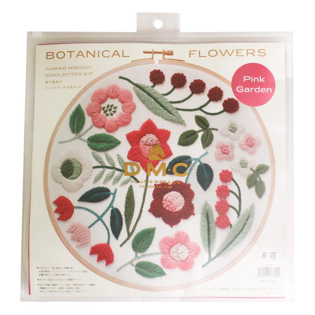 DMC Yumiko Higuchi Stickset, 3 Wollstiche, Botanisches Blumen-Set, Pink Garden, Durchmesser 25 cm, Vol.. DMC-JPT37