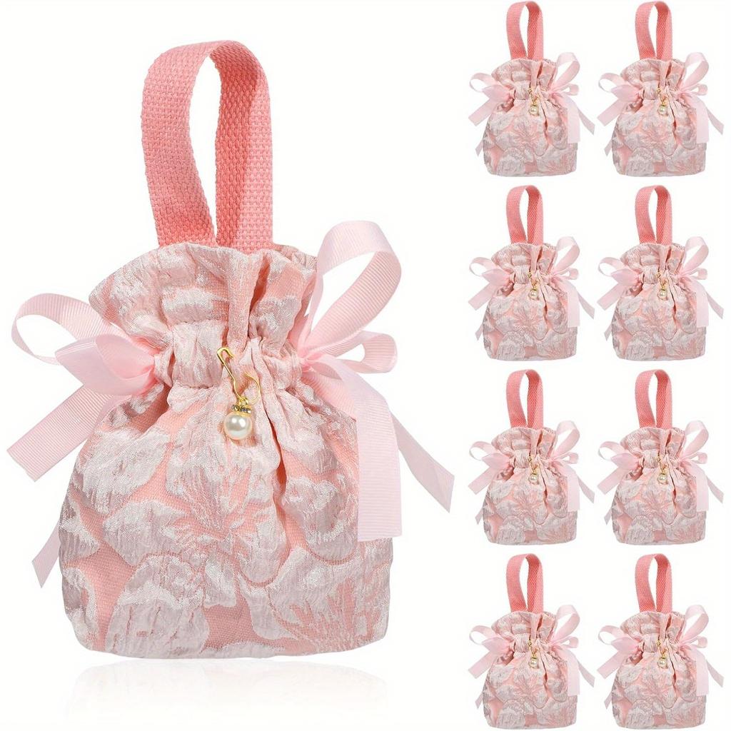10 Stück kleine florale Geschenktüten, rosa Canvas-Geschenktüten, Mini-Geschenkbeutel mit Kordelzug für Babyparty, Brautparty, Geburtstag, Hochzeit