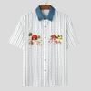 INCERUN Übergroße Herren Lapel-Kragen Kurzarm Gestreiftes Muster Patchwork Lässige Lockere T-Shirts Tops