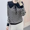 Frühling Neu Hanpai Damenmode Karomuster Lässig Puppenkragen Langarm Pullover Pullover Unterhemd Top