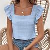 Frühling und Sommer Neue Damen Bluse mit quadratischem Ausschnitt und Rüschen Elegant Slim Fit Uni Flatterärmel Bluse Damen Locker Lässige Hemden Damenbekleidung 26486