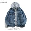 Herren 2022 Frühling/Herbst Colorblock Kapuzen-Jeansjacke – Trendige japanische Freizeitbekleidung