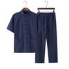 Herren Sommer Kurzarm Baumwolle und Leinen Tang Anzug - Chinesischer Stil Hanfu für Mittelalte und Ältere