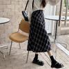 Damen Midilanger Wollplaidrock - Elastischer Bund, Retro Britischer A-Linien-Stil für Herbst und Winter