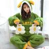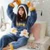 Damen Langhaariger Flanell-Pyjama mit Kapuze - Dicker, warmer Korallenfleece-Anzug für Herbst/Winter