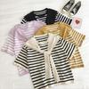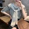 Summer 2024 Women's Fashion: Western-Style Striped Short-Sleeved Shawl T-Shirt