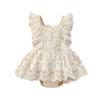 Design: Mit aufwendiger Blumenspitze und bestickten Rocklagen, einem charmanten rückenfreien Design, verstellbaren Schulterträgern und elastischen Bündchen für eine perfekte Passform strahlt dieser Babymädchen-Spitzen-Strampler Eleganz und Stil aus, um kostbare Momente mit Ihrem Neugeborenen festzuhalten.