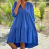 GMXIA Sommer Damen Frisch Süß V-Ausschnitt Reine Farbe Baumwolle Leinen Swing Casual Lange Kleider