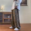 "Vintage Braune Jacquard Weitbeinige Overalls - Lockere Lässige Frühjahrshose"