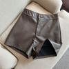2023 Schwarze PU-Shorts mit hoher Taille und schmalem Schnitt aus Leder für Herbst/Winter – Lässige, stiefelfreundliche Hosen in Übergröße