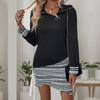Patchworkkleid Herbst Lässig Midi Reißverschluss Unregelmäßig Sweatshirtkleider