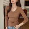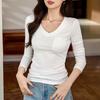 V-Ausschnitt Basis-Shirt für Damen Langarm-T-Shirt Herbstkleidung Neues Slim-Top