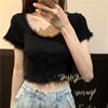 Französisches Strick-Basishemd mit quadratischem Ausschnitt für den Sommer, kurzärmelig, Spitzenrand, sexy Strickjacke mit freiliegender Taille, Oberteil mit schmaler Passform