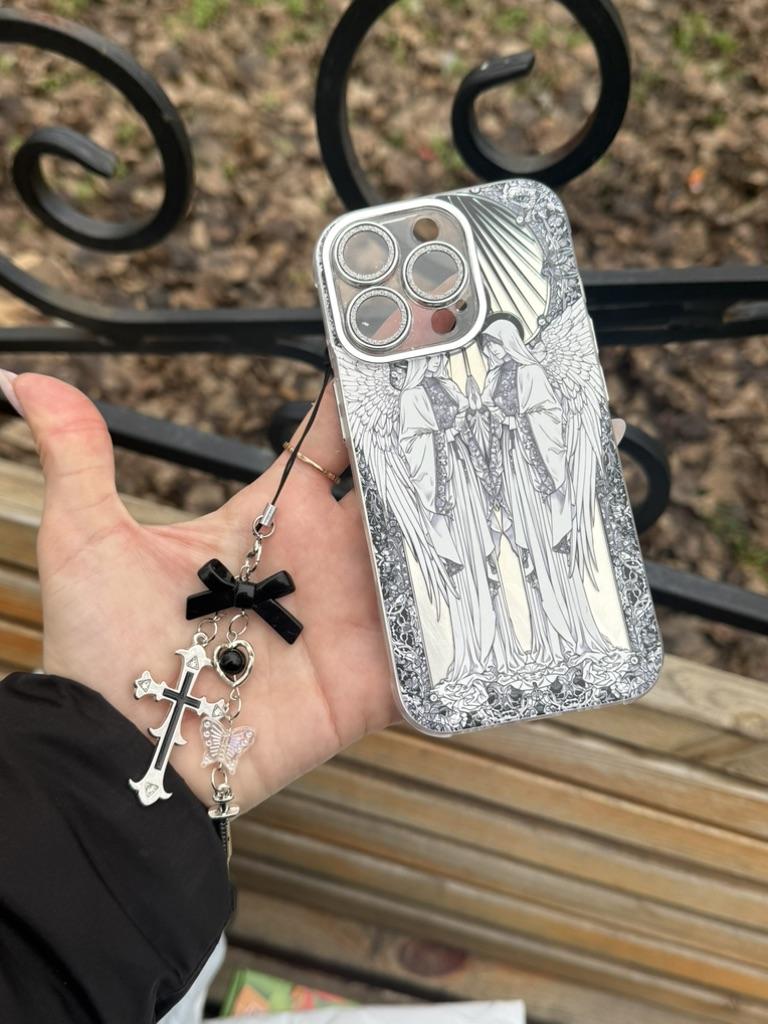 Mittelalterliche Vintage Cupid Engel Handyhülle iPhone 16 15 14 13 12 11 Pro Max Gefiederte Strukturierte Hardcover