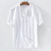 Lässiges weißes Kurzarmhemd aus Leinen-Baumwolle mit Stehkragen für Herren