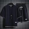 Sommer-Sportset aus Waffelstrick für Herren: Trendy Loose-Fit Shorts und Kurzarm-Top