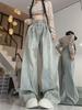 „Hellblaue Retro-Jeans mit hoher Taille und weitem Bein für Damen, Herbststil, lockere Passform, schlankmachend und bodenlang“
