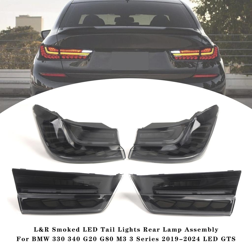 L&R Smoked LED Tail Lights Rear Lamp Assembly For BMW 330 340 G20 G80 M3 3 Series 2019-2024 LED GTS