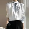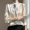 Frühlings- und Herbst-Damen-Flattergürtel-Hemd-Cardigan Rundhals Schleifen-Tops Anzug Innen Stehkragen Bluse