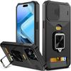 Stoßfestes, schweres Hartschalenetui mit Metallständer und Kartensteckplatz für das iPhone 16 Pro Max 15 Pro Max 14 Pro Max