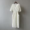 Vintage Plisseekleid mit V-Ausschnitt, Sommerkleid für Damen, Temperament, Taillenbund, mittellanges Kleid