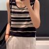 Hot Girl Ärmelloses gestreiftes T-Shirt für Damen, Sommer, Vintage, Quaste, Strickweste, kurz geschnittenes, hohles Oberteil für den Außenbereich