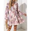 Frühling/Sommer Damen V-Ausschnitt Schnürkleid mit Blumendruck