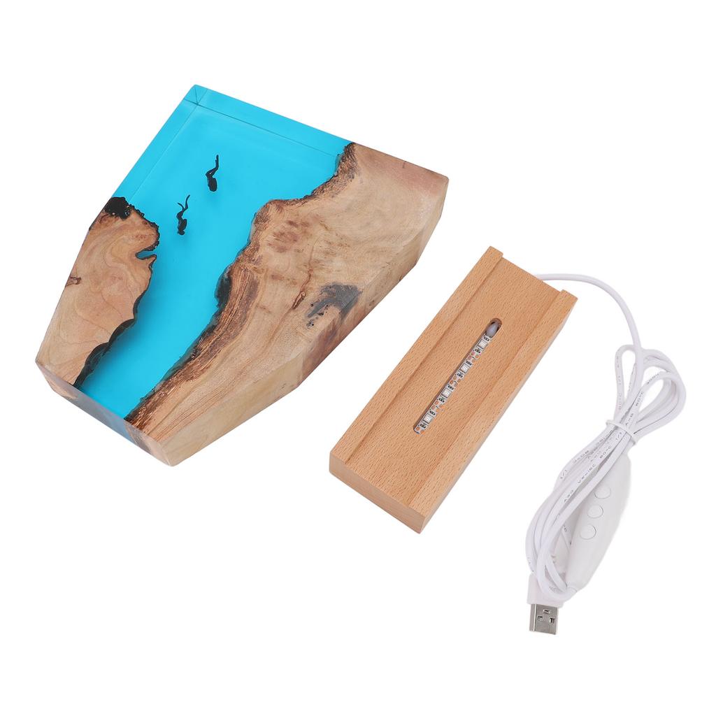Taucher Nachtlicht Buntes LED Holzharz Ozean Nachttischlampe Desktop Kunst Ornament Für Büro