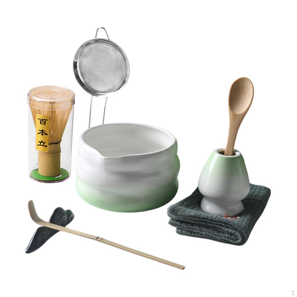 - 【Paket】: Japanisches Matcha-Tee-Set beinhaltet Teeschale, Matcha-Besen, Matcha-Löffel, Löffelständer, Geschirrtuch, Teelöffel, Matcha-Besenhalter und Sieb