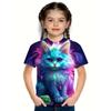 Sommer Rundhals 3D Katzenmuster Bedrucktes Top Modische und Lässige Kurzarm Kinder Mädchen T-Shirts