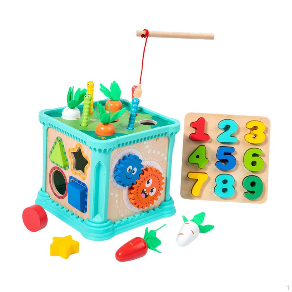 - 【Intelligence Box Toy】: 6 different activities that will keep your child entertained for hours and develop his thinking, sensory and hand eye coordination. Includes such things as clock learning, collect carrots, number learning, color sorters and shape sorters and more