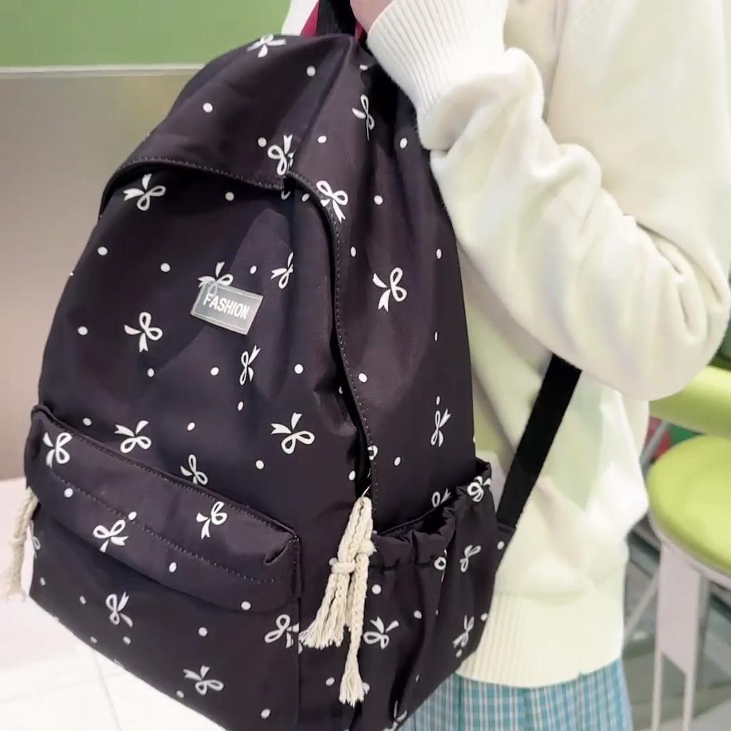 Schultasche für Studenten mit Schleifendruck, Rucksack mit großem Fassungsvermögen, Damen-Computerrucksack