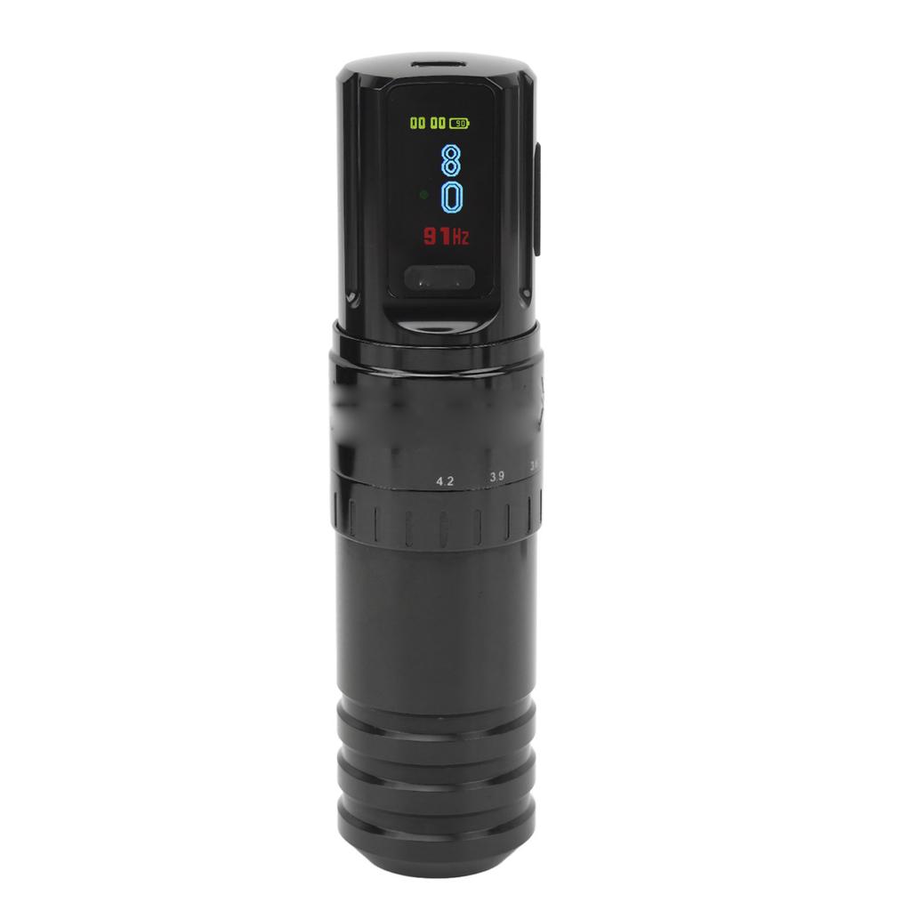 4. WIRELESS RECHARGEABLE BATTERY: Equipped with double 2400mAh batteries and LCD screen, this pen displays real time tattoo voltage, remaining battery life, operation duration, and current frequency.