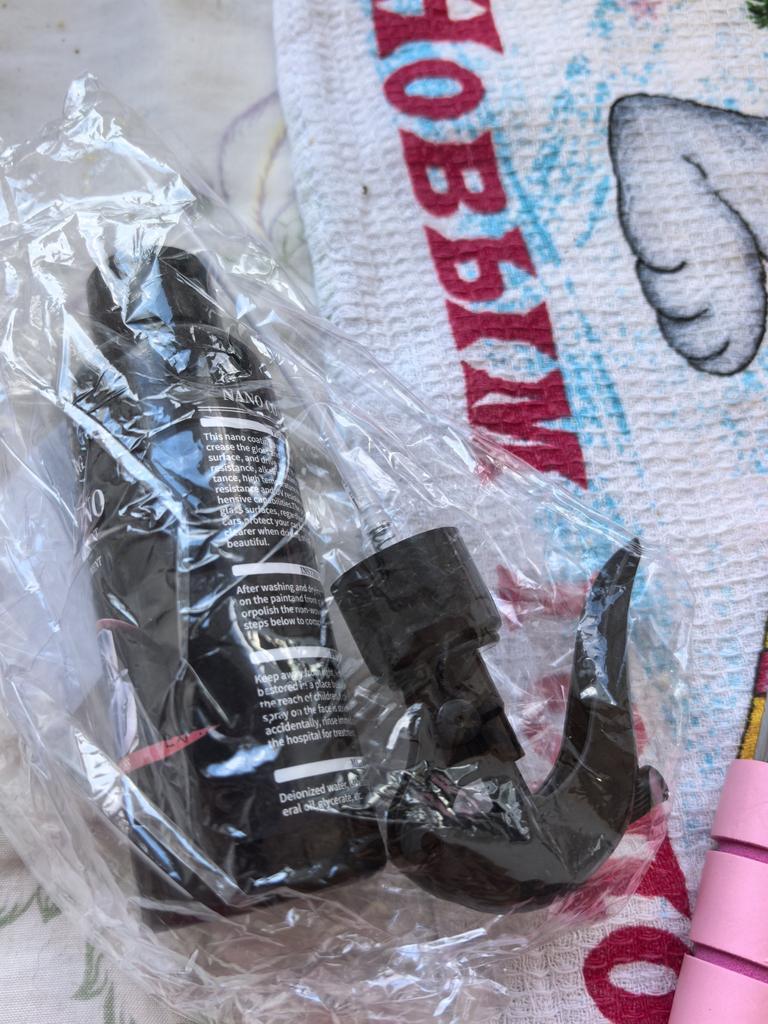 Die Ware im Paket kam nass an, der Flakon des Keramiksprays ist zerdrückt. Der Schaden ist gering, aber unangenehm.