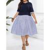 Damen Sommer Rundhals Gestrickt Patchwork Gestreift Kurzarm Fake Zwei Schwingkleid