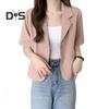 Sommer-Essential für Damen: Werten Sie Ihre Sommergarderobe mit diesem kurzärmeligen Anzugmantel auf. Sein leichtes Design macht es zur idealen Wahl für warmes Wetter und bietet sowohl Stil als auch Komfort.