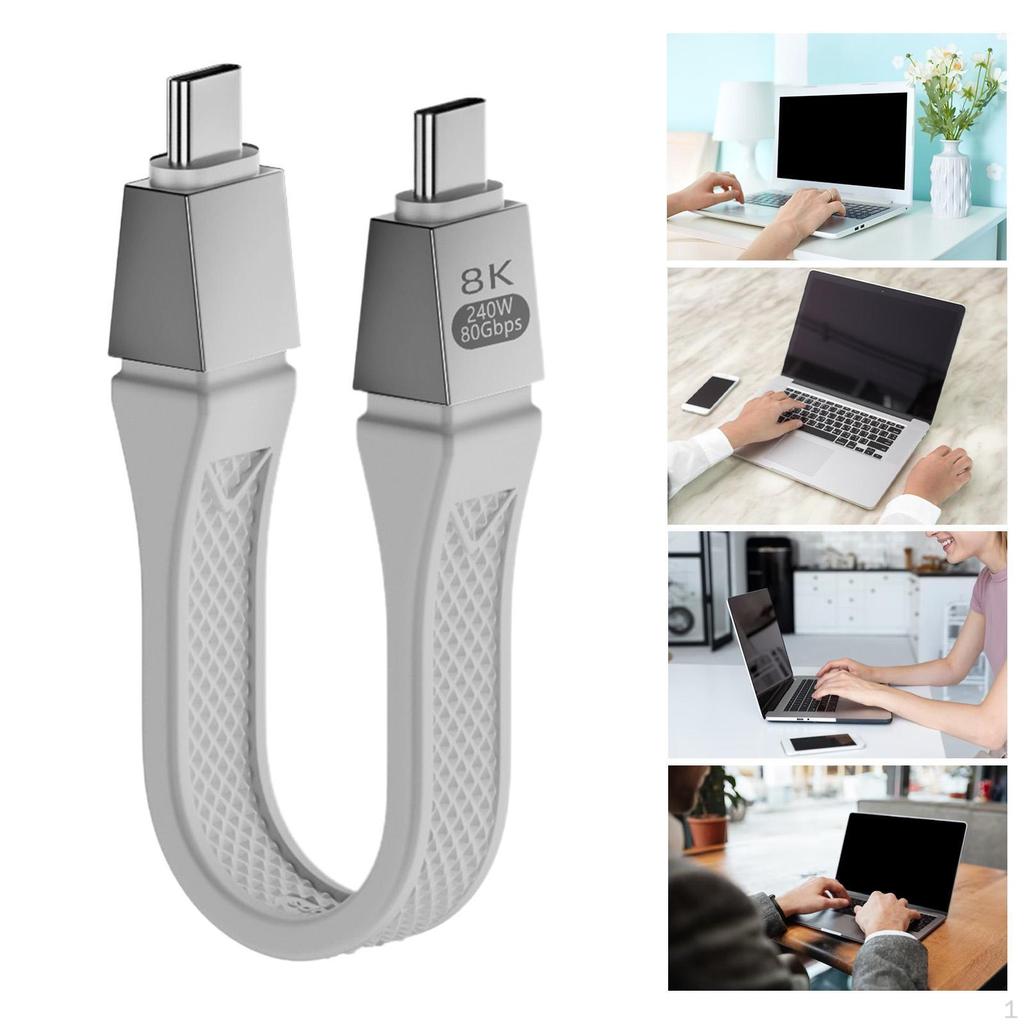 Short USB C Cable 80Gbps Connection 13 cm 240W High Speed Data Transfer