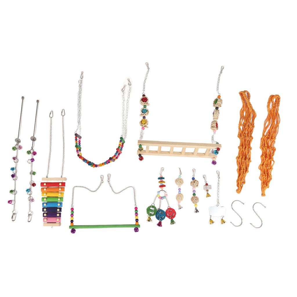 12pcs Chicken Coop Toys Colourful Lyre Swing Suspension Bridge Ladder Fruit Forks Mirror Rattan