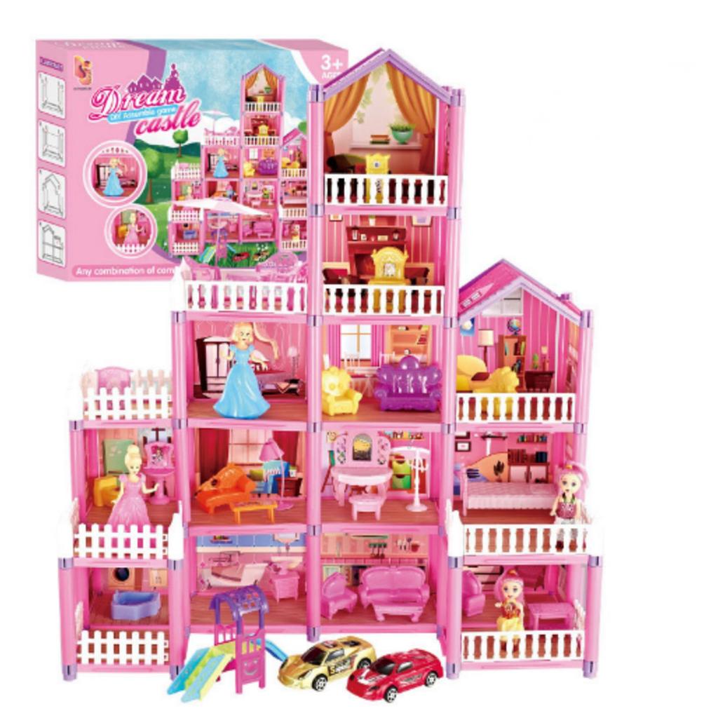 278-teiliges Puppenhaus-Bauspielzeug, DIY-Gehirntraining, Puppenhaus-Schloss-Bausatz für Mädchen, Rosa